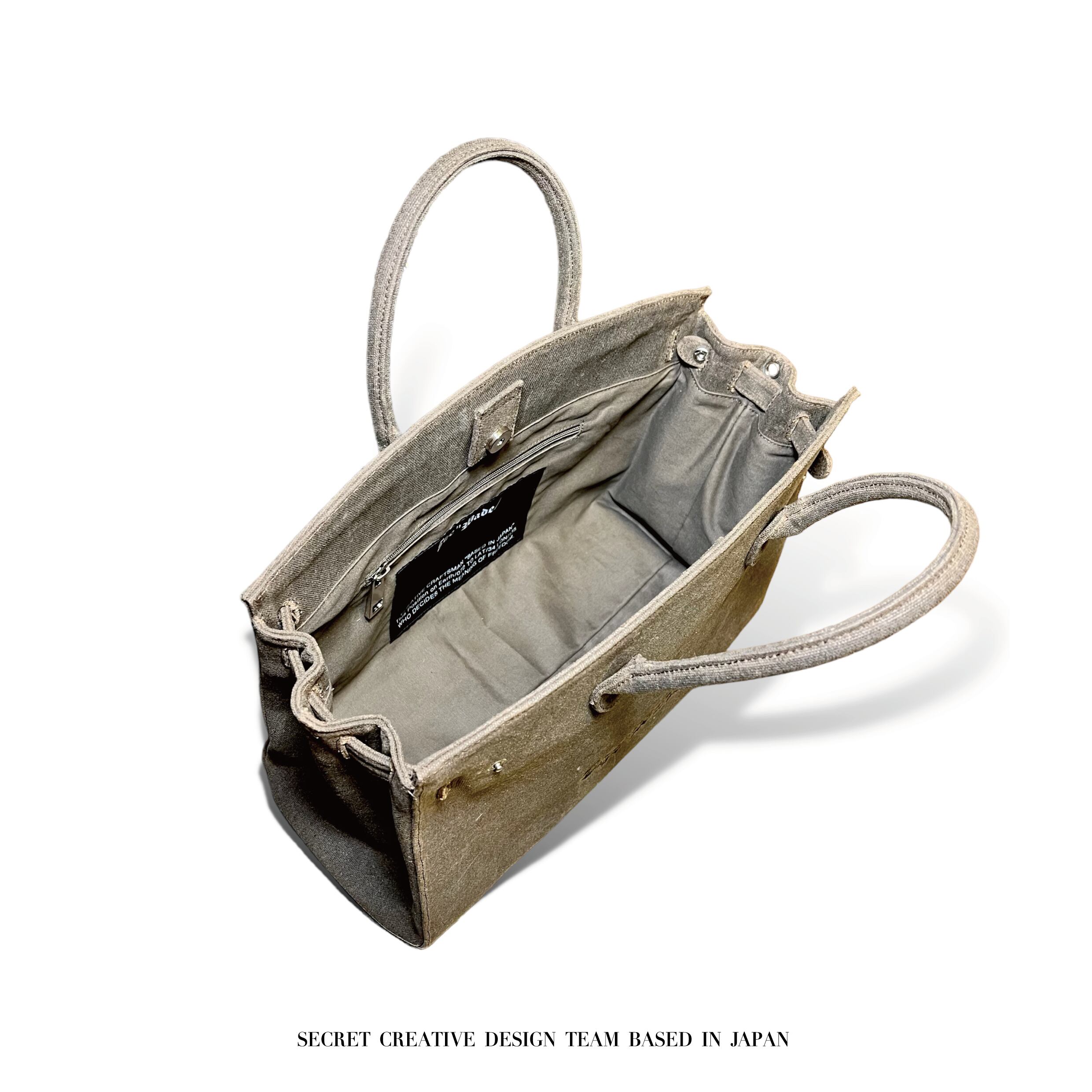 ※ワックスキャンバスという風合いのある厚手のキャンバス生地を使用しておりますので、一点一点生地の風合いが異なります。